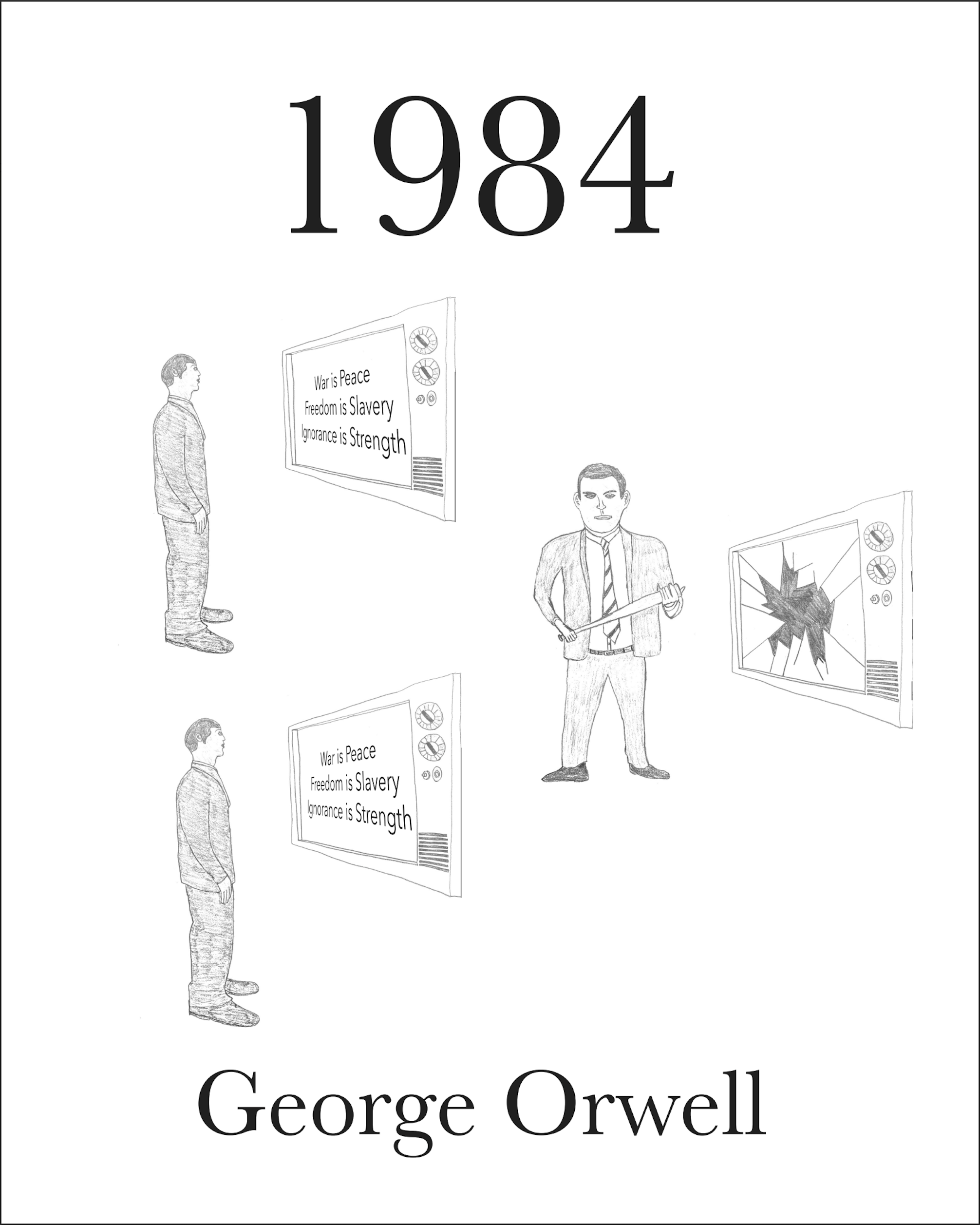 The second cover was a drawing of the main character bashing out one of the TVs that instructor the citizens standing by some other citizens being mindlessly brainwashed.